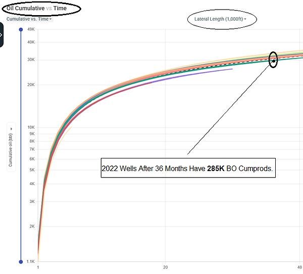 (GOR) over 10 MCF to 1 BO. These wells are lousy liquids wells (crude + condensate) but make on average 4.8 BCF of gas and some 65M bbls.