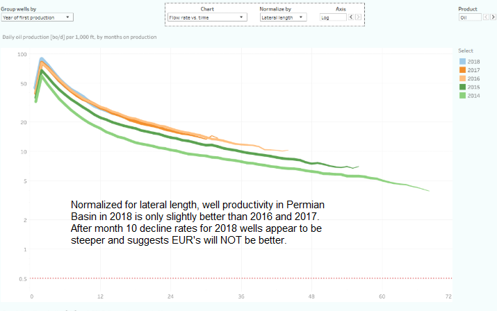 When normalized for lateral length there is a lot of realized production data from Permian Basin unconventional HZ wells, filed of record with the Texas Railroad Commission, that suggests oil productivity has not improved significantly since 2016 and may actually be plateauing.